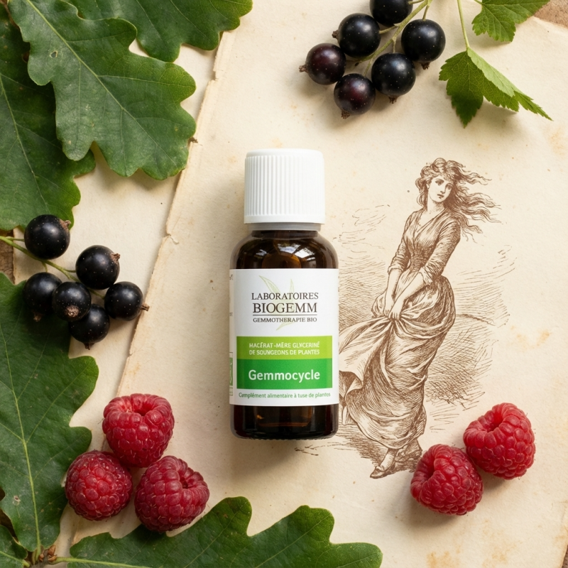 L'équilibre au féminin : GEMMOCYCLE est un complexe de gemmothérapie conçu pour accompagner les femmes tout au long de leur cycle. En associant le Chêne, le Cassis et le Framboisier, cette synergie offre une triple action : elle régule l'équilibre hormonal, soutient l'énergie physique et apaise les inconforts liés aux règles. C'est la solution naturelle idéale pour retrouver un meilleur confort féminin et mieux vivre les variations cycliques.