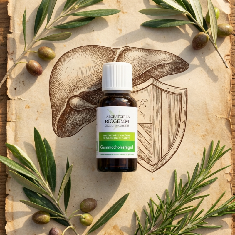 Le complexe GEMMOCHOLESREGUL réunit deux piliers de la pharmacopée méditerranéenne pour agir sur les équilibres internes de l'organisme.