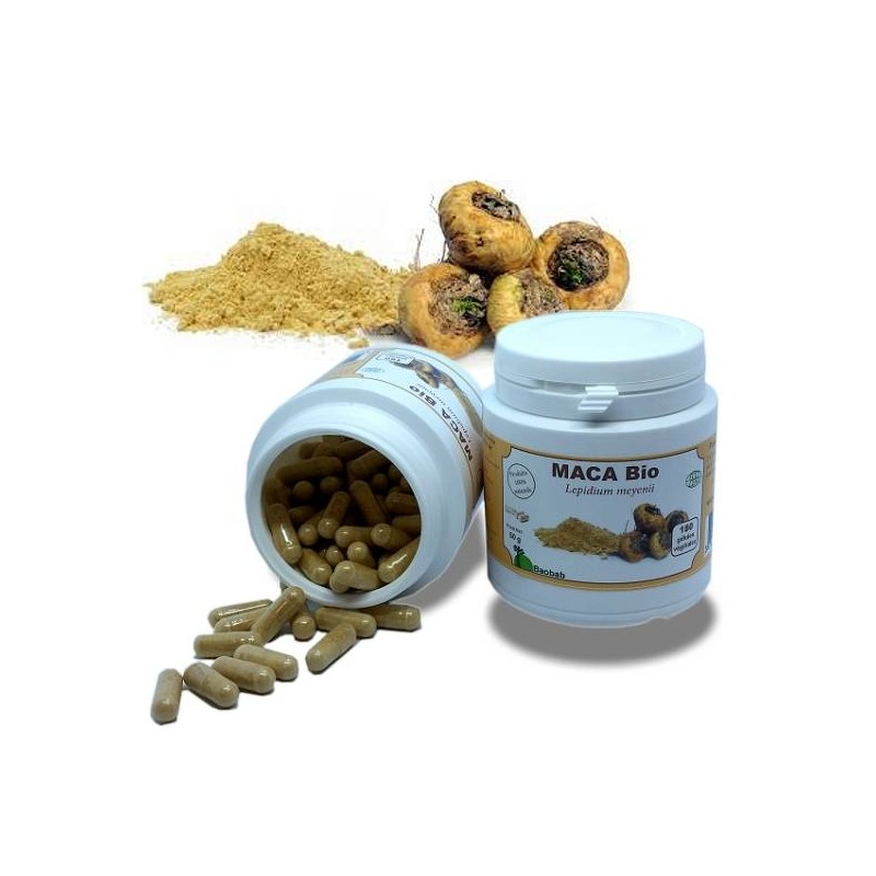 | Composition | Poudre de Maca Bio, gél. en Pullulane (fermentation de tapioca). |