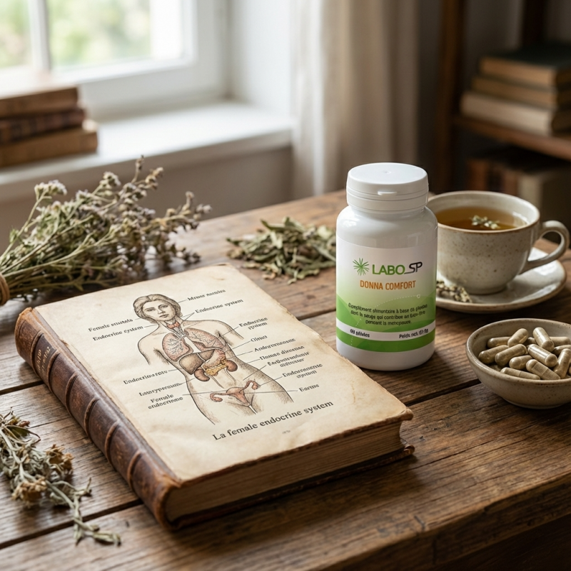 - Houblon: contribue traditionnellement à un effet sur l'équilibre hormonal féminin et peut être intéressant pour certaines manifestations cutanées ou pilaires chez la femme ménopausée.