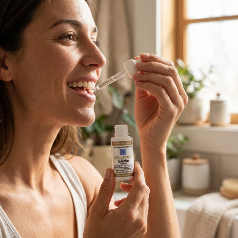 - L'avantage technologique Cellfood : La SAM-e est une molécule fragile et difficile à assimiler. La base Cellfood (78 minéraux, 34 enzymes, 17 acides aminés) sert de transporteur ionique, protégeant la molécule et la délivrant directement au niveau cellulaire pour une efficacité maximale.