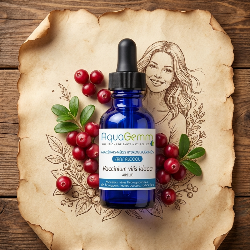 L'Airelle est un petit sous-arbrisseau résistant qui peuple les landes des zones tempérées. En gemmothérapie, l'utilisation de ses jeunes pousses est une tradition millénaire pour soutenir le terrain féminin, particulièrement lors des transitions hormonales importantes.