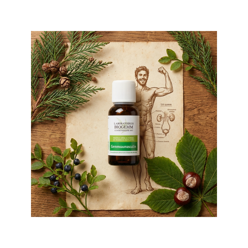 Le pilier de la force masculine : GEMMO AU MASCULIN est un complexe puissant conçu pour soutenir l'homme dans sa globalité. En associant le Séquoia, le Marronnier d'Inde et l'Airelle, cette synergie agit sur les deux piliers du bien-être masculin : la vitalité sexuelle et le confort urinaire. Idéal pour stimuler le tonus général et prévenir les désagréments liés à l'âge, ce complexe aide à retrouver énergie, endurance et sérénité.