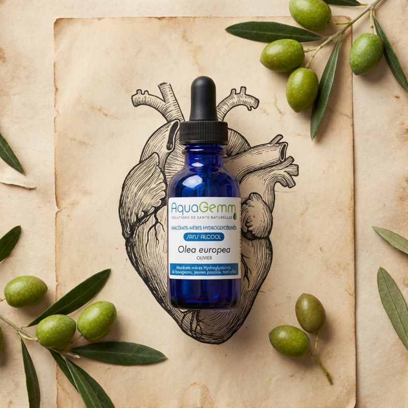 Le gardien de votre santé cardiaque et circulatoire : Le macérât d'OLIVIER AQUAGEMM (Olea europea) est issu d'un arbre millénaire réputé pour sa résistance et ses vertus cardio-régulatrices exceptionnelles. Sans alcool et 100% bio, cette solution naturelle agit en profondeur pour réguler la sphère cardiovasculaire et favoriser le bon fonctionnement circulatoire. Idéal en traitement de fond, il accompagne l'organisme dans la gestion du cholestérol et le maintien d'une tension équilibrée. Les bienfaits de l'Olivier se font ressentir dès 8 jours de prise, offrant une protection douce et durable pour votre cœur. Sa formulation pure s'adapte à tous les régimes et convictions.