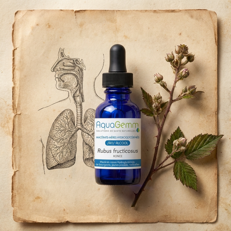 Le souffle pur de la nature : Le macérât de RONCE AQUAGEMM est une solution 100% Bio et sans alcool, reconnue pour son action naturelle sur la sphère pulmonaire. Préconisé en cure de fond, notamment lors des changements de saison, il soutient l'organisme face aux troubles respiratoires chroniques. Sa formulation innovante à base d'eau et de glycérine végétale rend ce remède accessible à tous (femmes enceintes, enfants, régimes spécifiques) et s'avère également être un excellent allié pour la santé de vos animaux.
