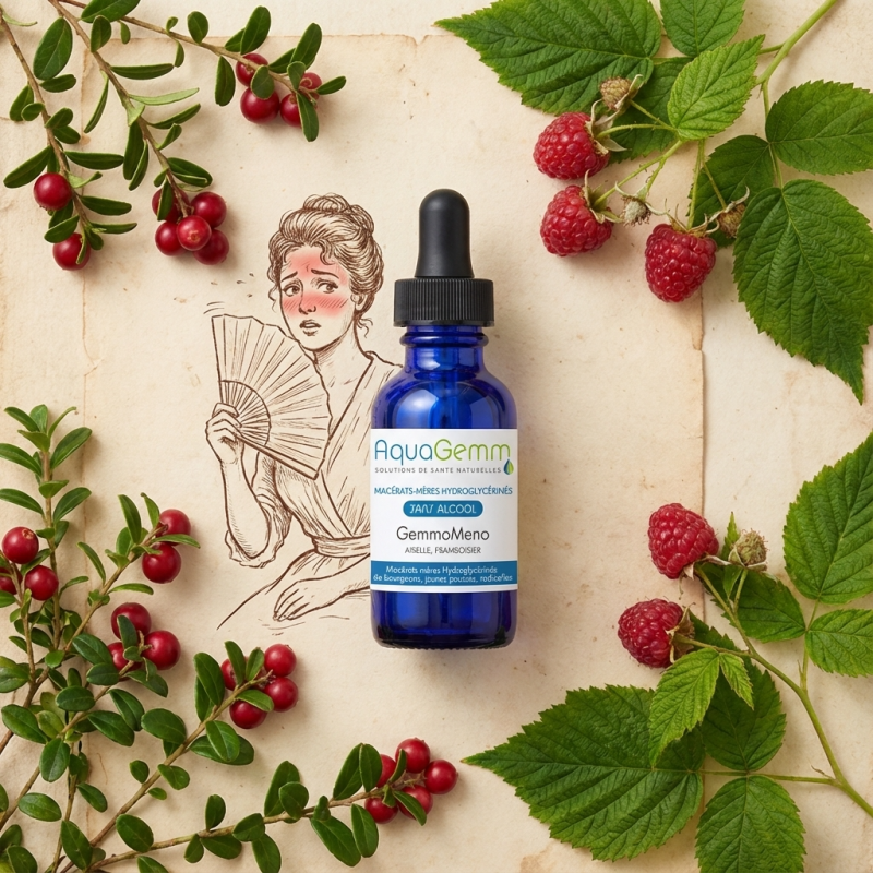 - L'Airelle (Vaccinium vitis-idaea) : Véritable alliée de la femme ménopausée, elle agit sur le vieillissement prématuré des tissus et joue un rôle régulateur sur les troubles liés à la baisse hormonale, notamment les bouffées de chaleur.