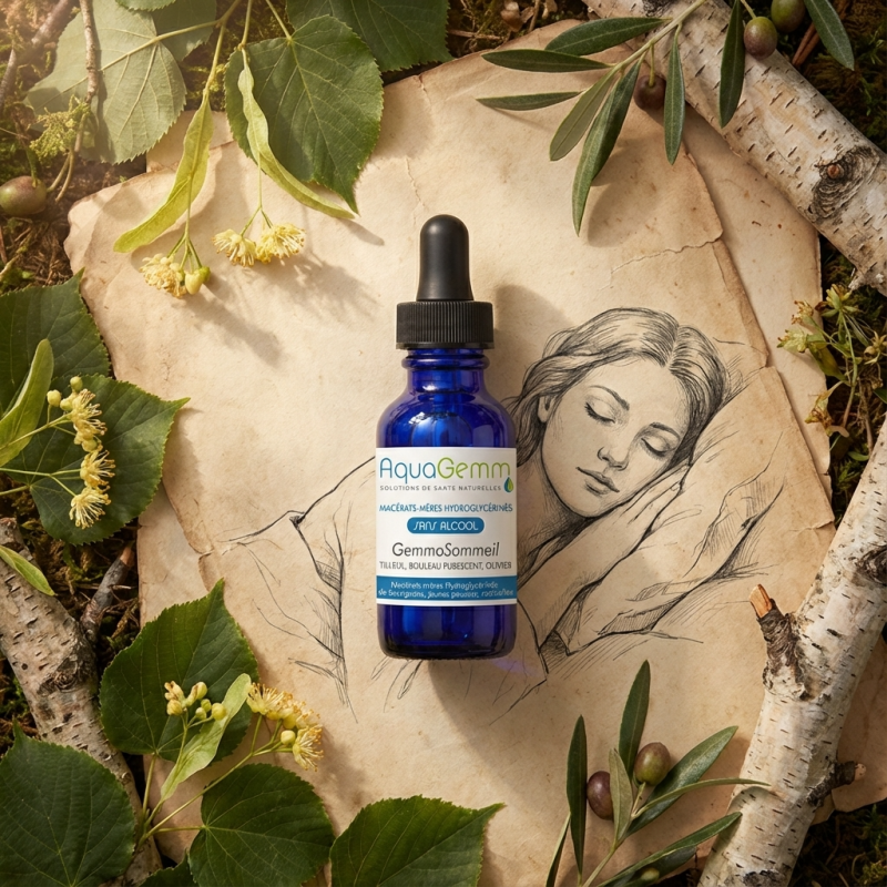 Le secret d'une nuit sereine pour un réveil énergisant : Le complexe GEMMO SOMMEIL AQUAGEMM est une synergie 100% bio et sans alcool conçue pour favoriser un endormissement rapide et un sommeil profond. En associant le Tilleul, l'Olivier et le Bouleau, ce macérât agit sur le système nerveux pour apporter un calme intérieur immédiat et une sensation de bien-être durable. Garanti sans risque d'accoutumance, il aide votre organisme à se ressourcer naturellement. Sa formulation pure à base d'eau et de glycérine végétale convient à tous ceux qui cherchent une alternative douce et efficace pour en finir avec les nuits agitées.
