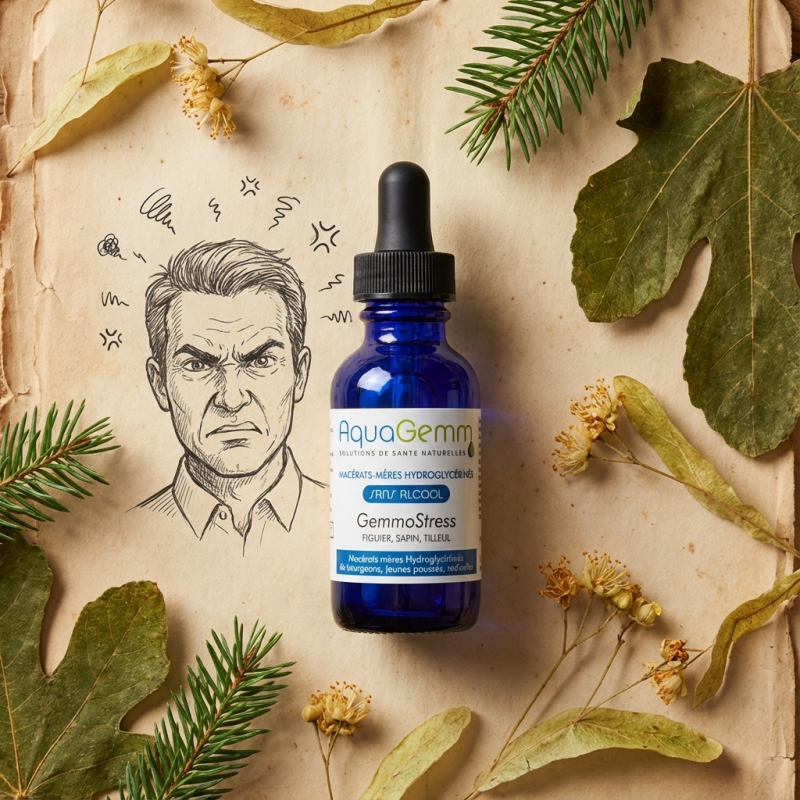 Retrouvez votre calme intérieur face aux défis du quotidien : Le complexe GEMMO STRESS AQUAGEMM est une synergie 100% bio et sans alcool conçue pour apporter apaisement et sérénité. En associant le Figuier, le Tilleul et le Sapin, ce macérât agit efficacement sur les angoisses et le stress, qu'ils soient passagers ou récurrents. Il vous aide à réagir plus sereinement face aux épreuves de la vie tout en apportant une vitalité douce à votre organisme. Sa formulation pure à base d'eau et de glycérine végétale convient à tous et peut être utilisée ponctuellement ou en cure pour un bien-être émotionnel durable.