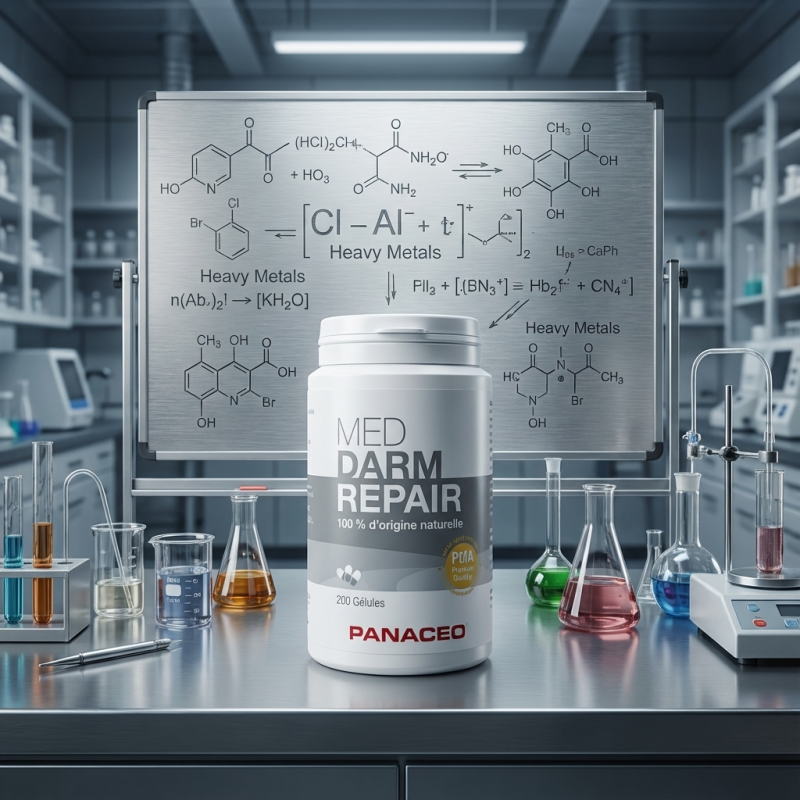Le Med Darm Repair de la marque Panaceo est un dispositif médical de classe supérieure, reconnu pour ses capacités exceptionnelles d'adsorption sélective. Sa mission principale est la chélation des toxines et des métaux lourds qui saturent notre système digestif et affaiblissent notre barrière protectrice naturelle.
