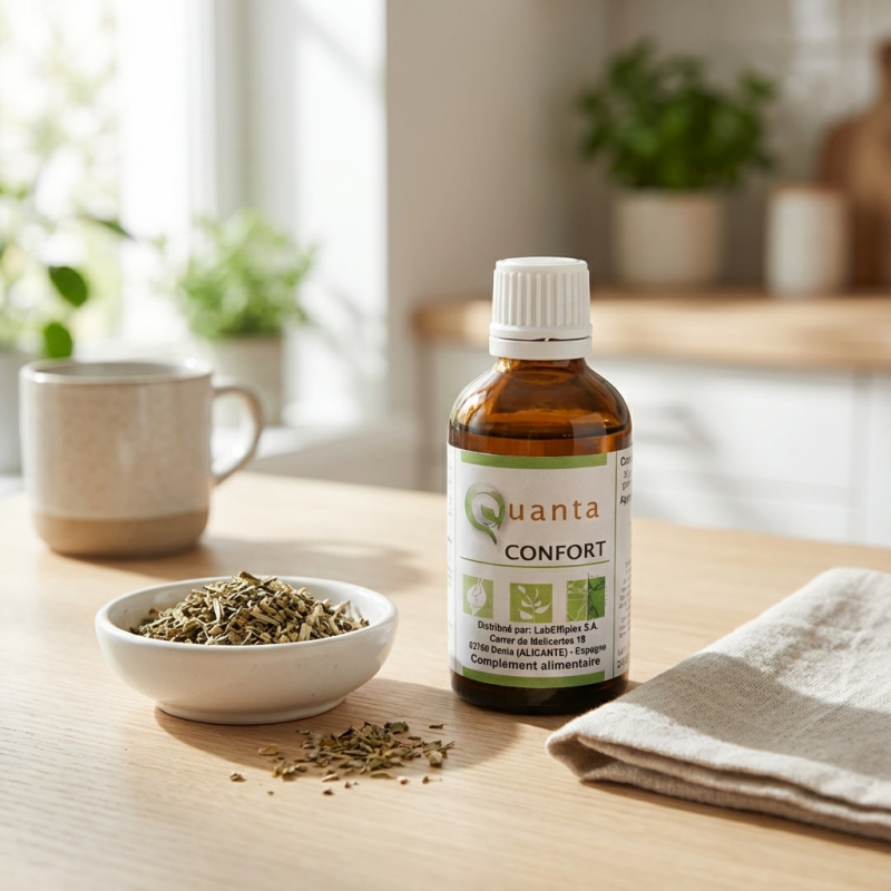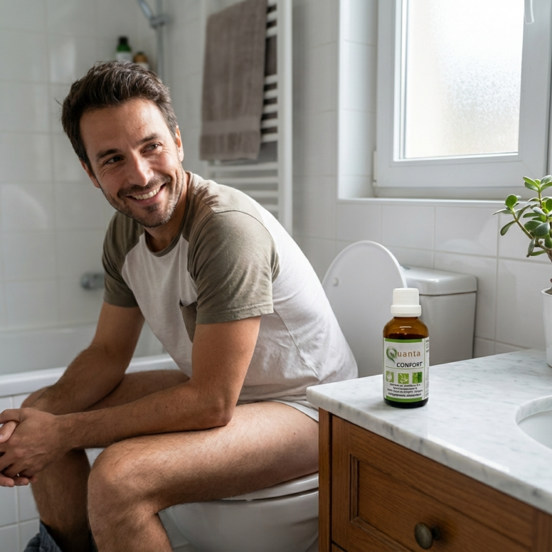 Le QUANTA CONFORT est une solution de phytothérapie ciblée pour les personnes souffrant de troubles circulatoires localisés. La pathologie hémorroïdaire étant souvent le signe d'une circulation veineuse paresseuse ou d'un foie engorgé, ce complexe agit sur l'ensemble de la chaîne de retour veineux.