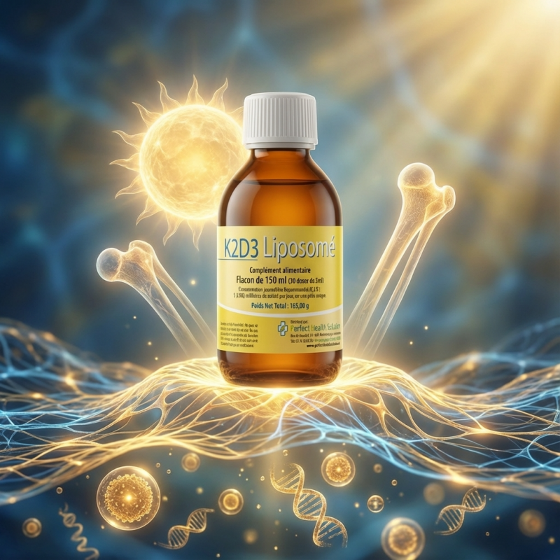 contribue à un apport de vitamine D3 et de vitamine K2 sous forme liposomée.