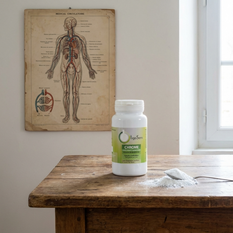 - Maîtrise de la Glycémie – En facilitant le travail de l'insuline, le chrome aide les cellules à mieux capter le glucose, évitant ainsi les variations brutales du taux de sucre dans le sang.