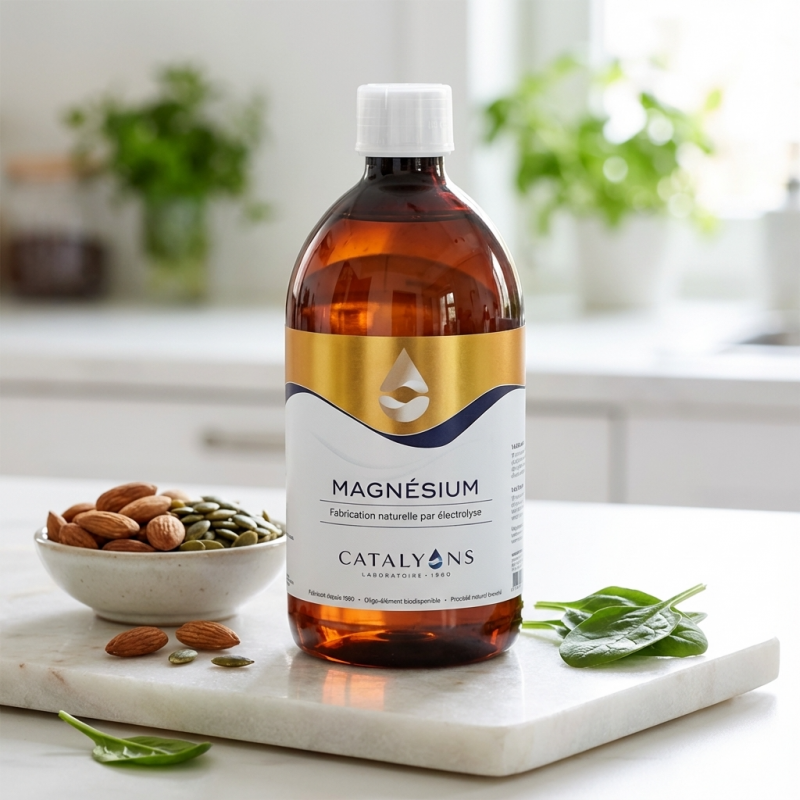 Le régulateur universel de l'énergie et de la sérénité : Le MAGNÉSIUM des Laboratoires Catalyons (500 ml) est l'oligo-élément indispensable à plus de 300 réactions enzymatiques dans le corps humain. Véritable "bouclier antistress", il intervient aussi bien dans la transmission nerveuse que dans la relaxation des fibres musculaires. Contrairement aux sels de magnésium classiques parfois difficiles à digérer, sa forme ionisée liquide permet une assimilation directe par les muqueuses buccales. C'est la réponse naturelle idéale pour combattre la fatigue passagère, l'irritabilité, les crampes ou les troubles du sommeil, tout en respectant parfaitement votre confort digestif.