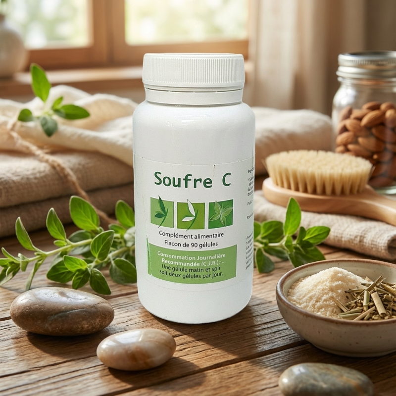 • Cohésion des tissus : Une cure de SOUFRE C permet de rétablir la "colle" biologique de l'organisme. Cela se traduit par une peau plus souple, des cheveux moins cassants et des ongles moins dédoublés.