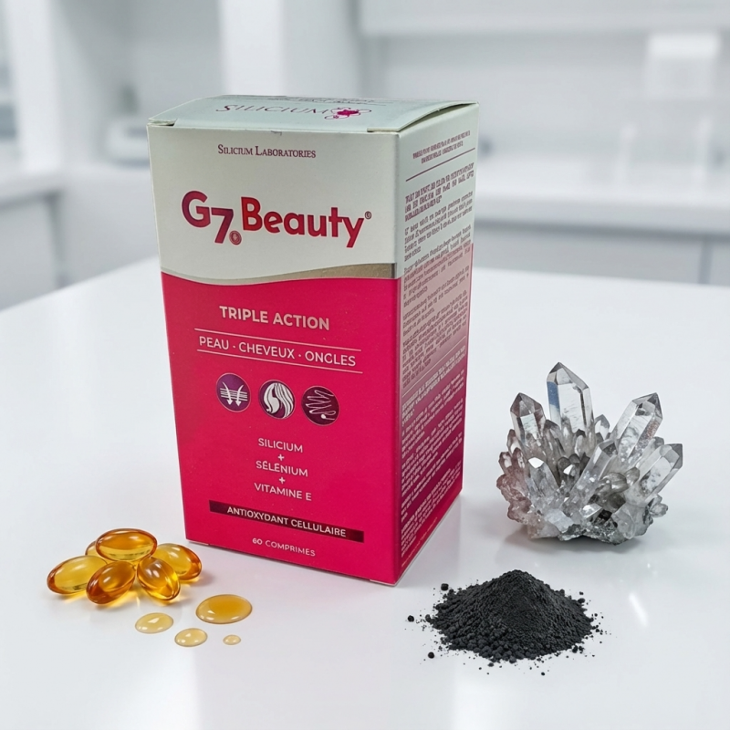Pour maximiser l'effet "bonne mine" et l'élasticité de la peau, nous vous conseillons d'associer votre cure de G7 BEAUTY à une hydratation quotidienne suffisante (au moins 1,5L d'eau). Le silicium aide à retenir l'eau dans les tissus, rendant votre peau naturellement plus pulpeuse.