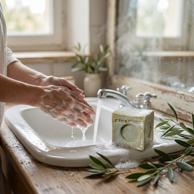 L'huile d'olive est utilisée depuis l'Antiquité pour ses vertus cosmétiques incomparables, particulièrement dans la fabrication des savons de haute qualité :