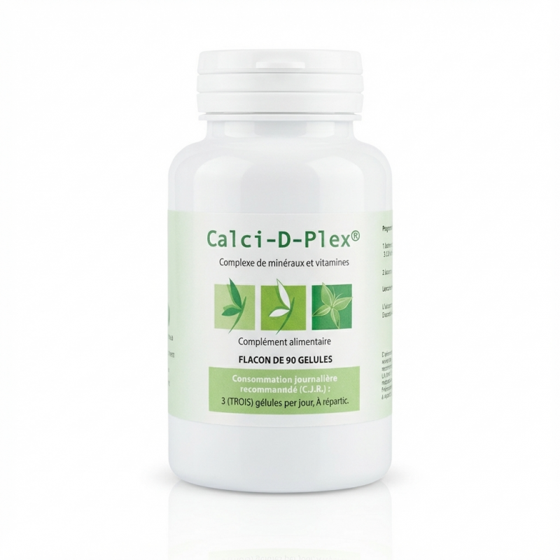 - Santé de l'Ossature – Le calcium est le constituant majeur des os. Calci D Plex aide à lutter contre la déminéralisation et soutient la solidité du squelette face au vieillissement.