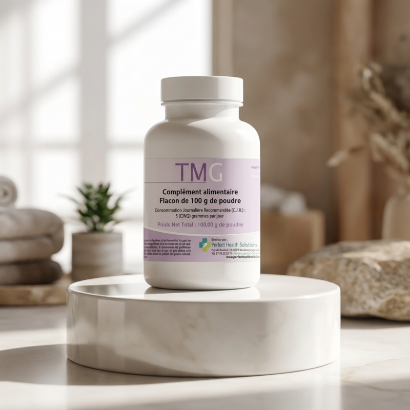 La TMG (Triméthylglycine) de Perfect Health Solutions est une molécule hautement bioactive qui intervient dans des centaines de réactions biochimiques quotidiennes. Agent méthylant d'une puissance exceptionnelle, elle assure le bon fonctionnement de l'organisme, de la synthèse des neurotransmetteurs à la protection contre le stress oxydatif.