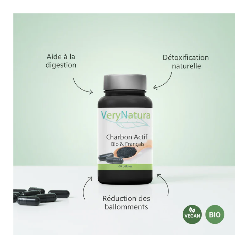 Ce charbon Very Natura est idéal en cas de repas copieux, de digestion difficile ou lors d'une cure détox ponctuelle pour purifier l'organisme.