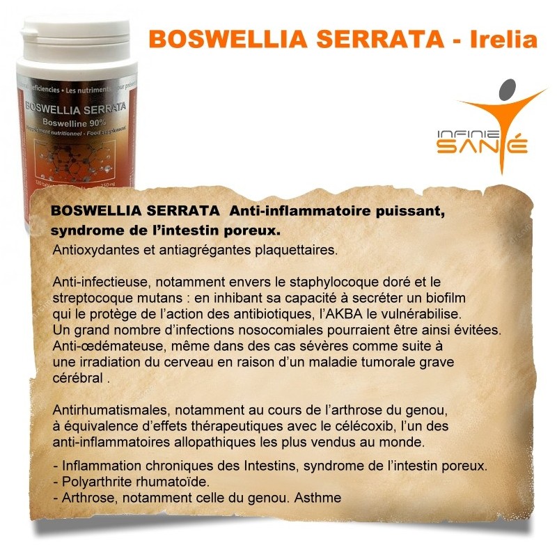 1,5 g de Boswellia équivalant à 3 comprimés le matin et 3 comprimés le soir