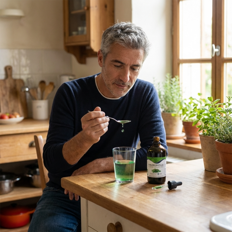 La chlorophylle magnésienne se consomme diluée. Sa concentration permet une utilisation durable.