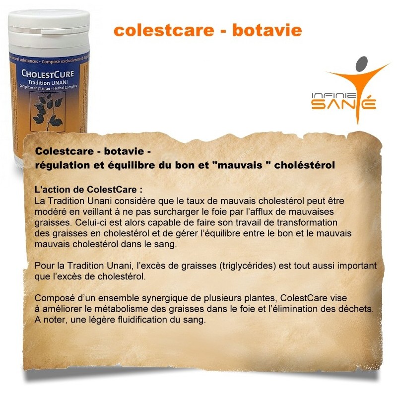 L'équilibre lipidique au naturel : COLESTCARE de Botavie est un complément alimentaire formulé pour aider l'organisme à maintenir des taux de cholestérol sains. Contrairement aux approches qui ciblent uniquement les graisses alimentaires, ColestCare agit en profondeur en soutenant les fonctions du foie, organe responsable de la production et de l'élimination du cholestérol. Grâce à une synergie de plantes reconnues, il favorise un bon ratio entre le "bon" (HDL) et le "mauvais" (LDL) cholestérol, tout en aidant à la gestion des triglycérides. C’est un allié précieux pour protéger votre système cardiovasculaire et préserver la souplesse de vos artères sans agresser votre métabolisme.
