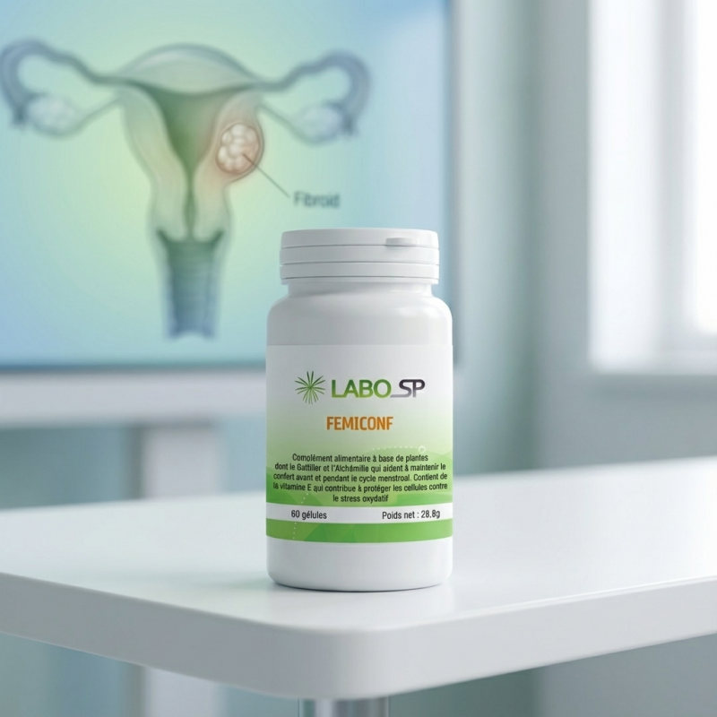 La réponse naturelle pour le contrôle des fibromes utérins : FEMICONF est un complexe nutritionnel de pointe élaboré par le laboratoire Labosp / Natural Health Means pour accompagner les femmes face aux fibromes et aux déséquilibres hormonaux. Plutôt que de subir les désagréments liés à la prolifération des tissus utérins, ce complément agit sur les mécanismes profonds : la régulation des œstrogènes, la réduction de l'inflammation et le contrôle de l'angiogenèse (formation des vaisseaux nourrissant le fibrome). En associant des antioxydants spécifiques comme l'EGCG du thé vert et le Curcuma, FEMICONF aide à stabiliser le terrain hormonal et à retrouver un confort utérin durable.