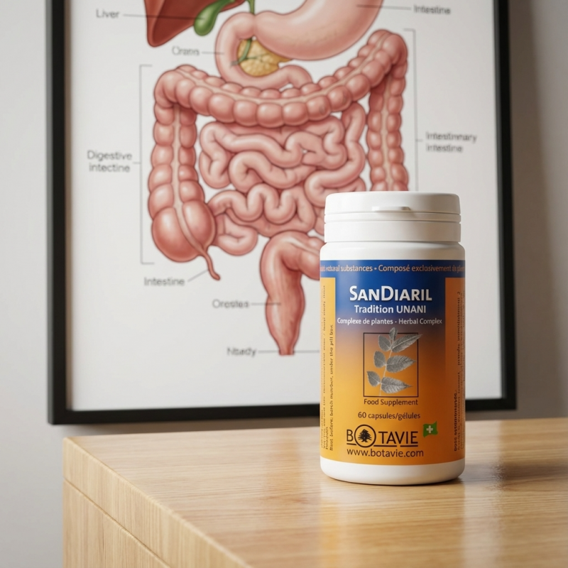 Un transit trop rapide empêche l'absorption correcte des nutriments et fatigue l'organisme. Sandiaril a été formulé pour redonner au système digestif son rythme naturel sans perturber son équilibre biologique.