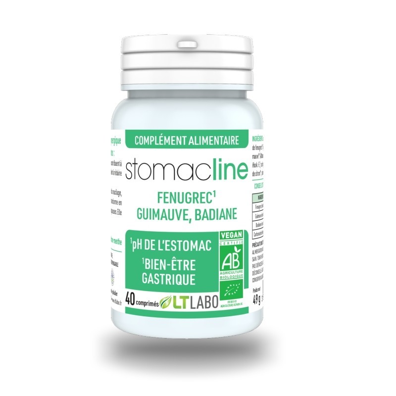 STOMACLINE des laboratoires LT LABO est un complément alimentaire certifié Bio spécifiquement formulé pour les personnes souffrant d'inconfort gastrique chronique ou passager.