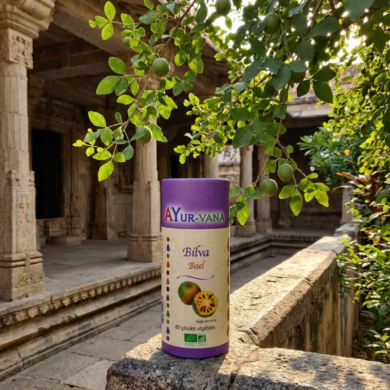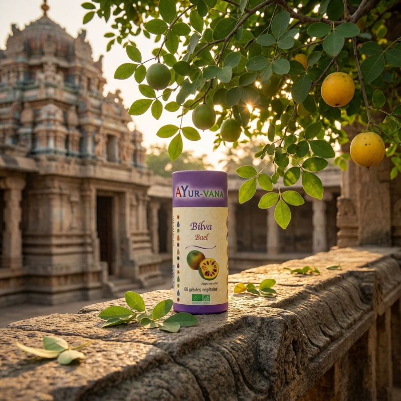 Le saviez-vous ? En Ayurvéda, on dit que le Bilva possède une énergie "Ushna" (chauffante) mais un goût "Kashaya" (astringent). Cette combinaison est parfaite pour réduire l'excès de mucus dans les intestins (Kapha) tout en calmant les spasmes dus à la nervosité (Vata). Pour un résultat optimal, essayez de consommer vos gélules avec de l'eau tiède plutôt que froide.