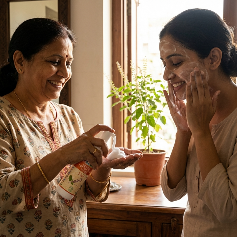 MOUSSE NETTOYANTE visage Tulsi Bio contribue au nettoyage purifiant de la peau selon l'Ayurvéda.