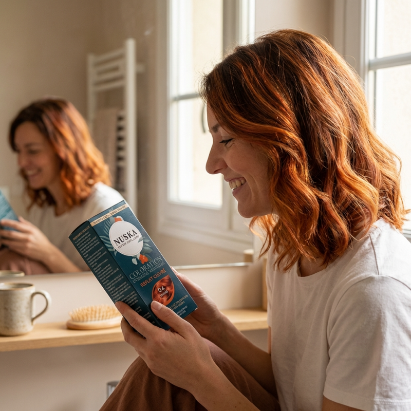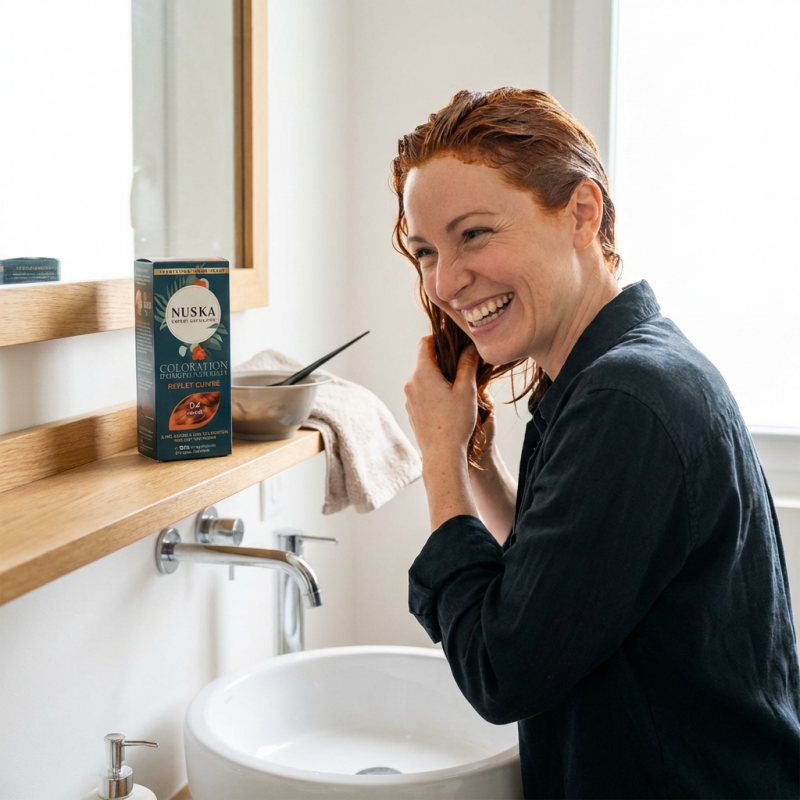 - Entretien de la couleur : Les pigments cuivrés captent magnifiquement la lumière mais demandent de l'attention. Utilisez le Shampoing Brillance Nuska entre deux colorations pour maintenir l'effet miroir de votre reflet.