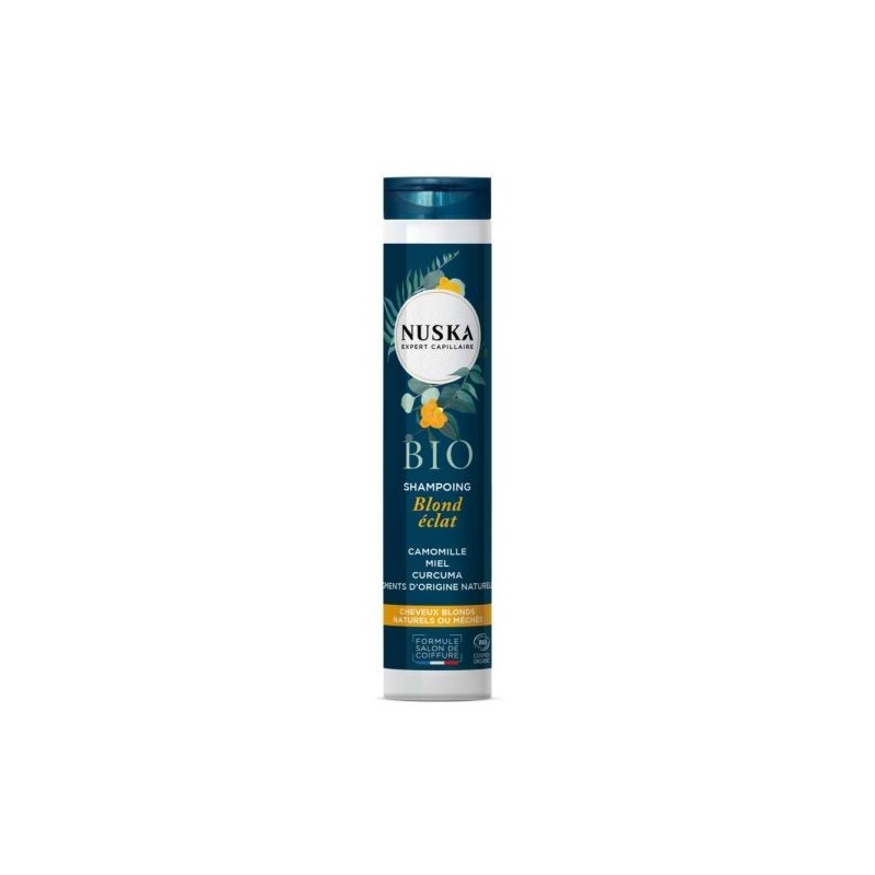 Le SHAMPOING CHEVEUX BLONDS NUSKA est une véritable infusion de lumière certifiée BIO, conçue pour sublimer et protéger toutes les nuances de blond, qu'elles soient naturelles, colorées ou méchées.