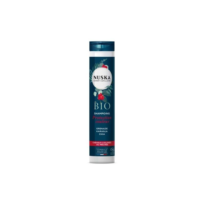 Le SHAMPOING CHEVEUX COLORÉS NUSKA est un soin protecteur certifié BIO, spécifiquement conçu pour verrouiller les pigments au cœur de la fibre et sublimer l'éclat de votre coloration.