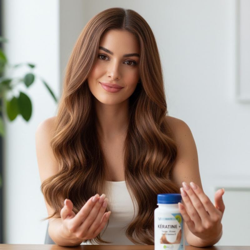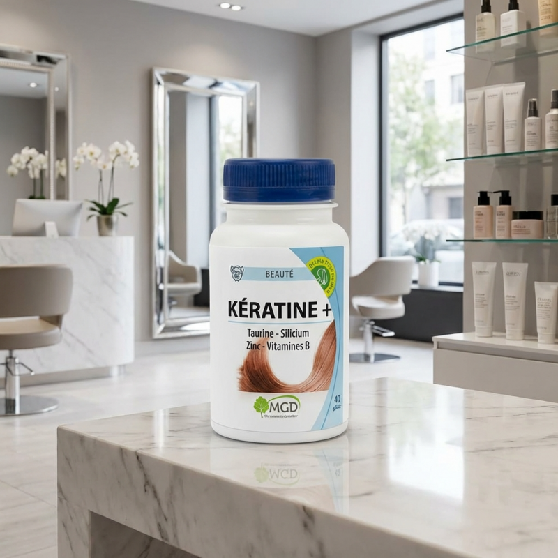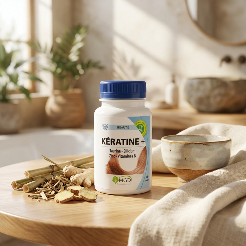 Le cheveu est une matière vivante qui subit les carences alimentaires et le stress oxydatif. KÉRATINE + est une solution complète qui ne se contente pas d'apporter de la kératine ; elle fournit à l'organisme tous les co-facteurs (minéraux et vitamines) nécessaires pour que le corps puisse lui-même réparer et fortifier ses phanères. C'est un complément idéal lors des changements de saison ou suite à une fatigue passagère impactant la chevelure.