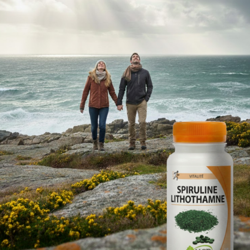 Reminéralisation Marine : En associant la spiruline au lithothamne, une petite algue rouge calcaire, cette formule offre un apport naturel et hautement assimilable en calcium et magnésium. Cette alliance favorise l'équilibre acido-basique de l'organisme et participe à la solidité de la structure osseuse, offrant ainsi une solution globale pour les sportifs, les seniors ou toute personne en quête d'un regain d'énergie durable.