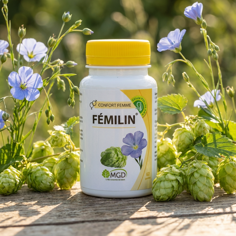 FÉMILIN de MGD Nature est une synergie experte conçue pour accompagner les femmes lors du passage délicat de la ménopause.