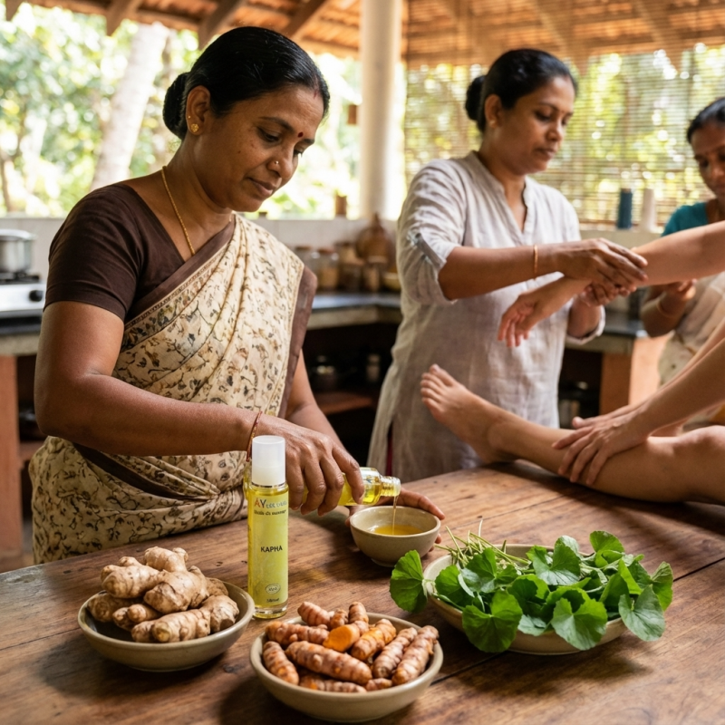 Le saviez-vous ? En Ayurvéda, masser ses articulations et ses muscles avec une huile chauffante le matin aide à évacuer "Ama" (les toxines) qui s'accumulent durant la nuit, offrant ainsi une sensation de légèreté durable.