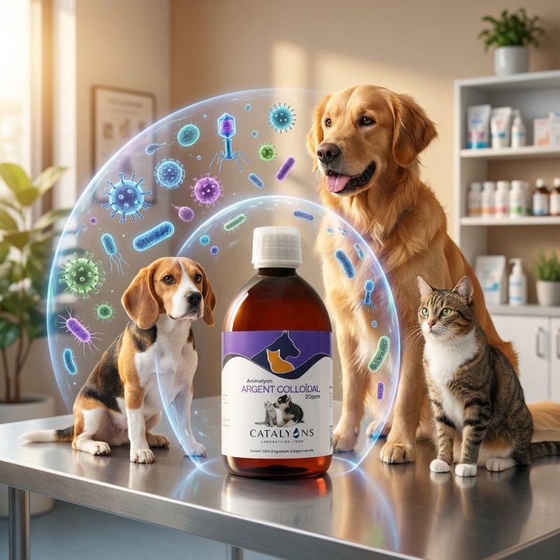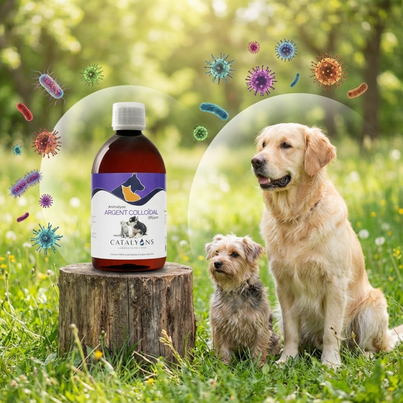 L'Animalyon Argent Colloïdal 20 ppm est une solution ionisée spécifiquement formulée pour l'hygiène et le soin de la peau de vos animaux de compagnie (chiens, chats, chevaux). Issu du savoir-faire des laboratoires Catalyons, ce produit offre une pureté exceptionnelle pour assainir l'épiderme et les muqueuses de manière naturelle. Un bouclier naturel pour l'hygiène animale L'argent colloïdal est reconnu en soins vétérinaires naturels pour ses propriétés purifiantes et protectrices à large spectre : Assainissement cutané : Aide à nettoyer les zones irritées, les rougeurs ou les petites imperfections de la peau. Hygiène des zones sensibles : Idéal pour l'entretien du contour des yeux, des oreilles ou des coussinets. Confort immédiat : Sa forme ionisée permet une action efficace sans piquer ni irriter l'animal, respectant la sensibilité de son pelage. Pureté garantie : Solution sans conservateurs, sans additifs chimiques et sans parfum, garantissant une tolérance maximale même en cas de léchage.