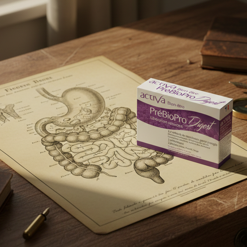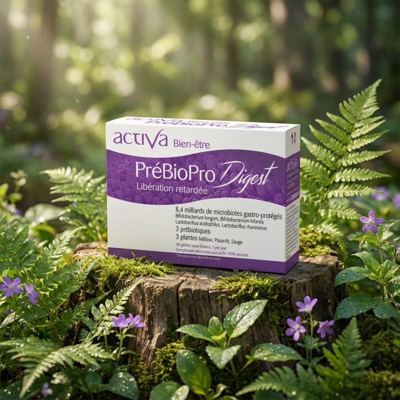 Le complexe PRÉBIOPRO DIGEST BIEN-ÊTRE d'Activa est une solution naturelle double action conçue pour rééquilibrer la flore intestinale tout en apaisant les troubles digestifs quotidiens.