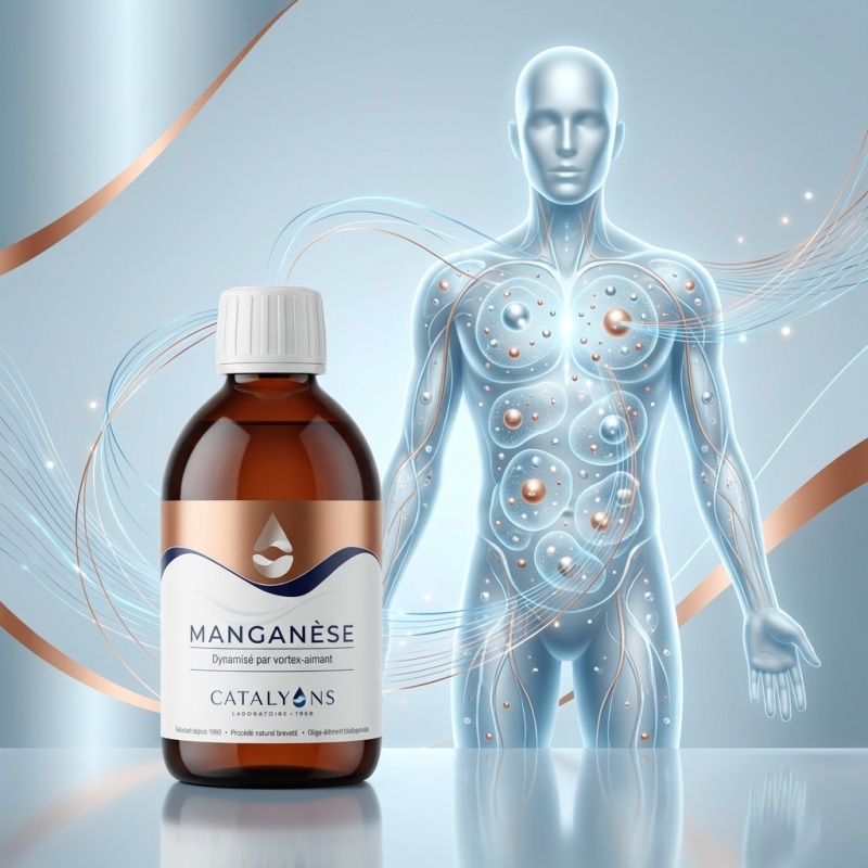 L'étincelle enzymatique au cœur de vos cellules : Le MANGANÈSE des Laboratoires Catalyons (500 ml) est bien plus qu'un simple minéral ; c'est un cofacteur indispensable à des dizaines de réactions chimiques vitales. Intervenant dans la protection contre le vieillissement cellulaire et la solidité de la charpente osseuse, il est aussi le grand régulateur du terrain allergique en oligothérapie traditionnelle. Sa forme liquide ionisée garantit une assimilation immédiate par les muqueuses, permettant à l'organisme de mobiliser ses défenses et son énergie sans passer par les barrières digestives complexes. Un allié précieux pour la vitalité globale et la résistance aux agressions extérieures.