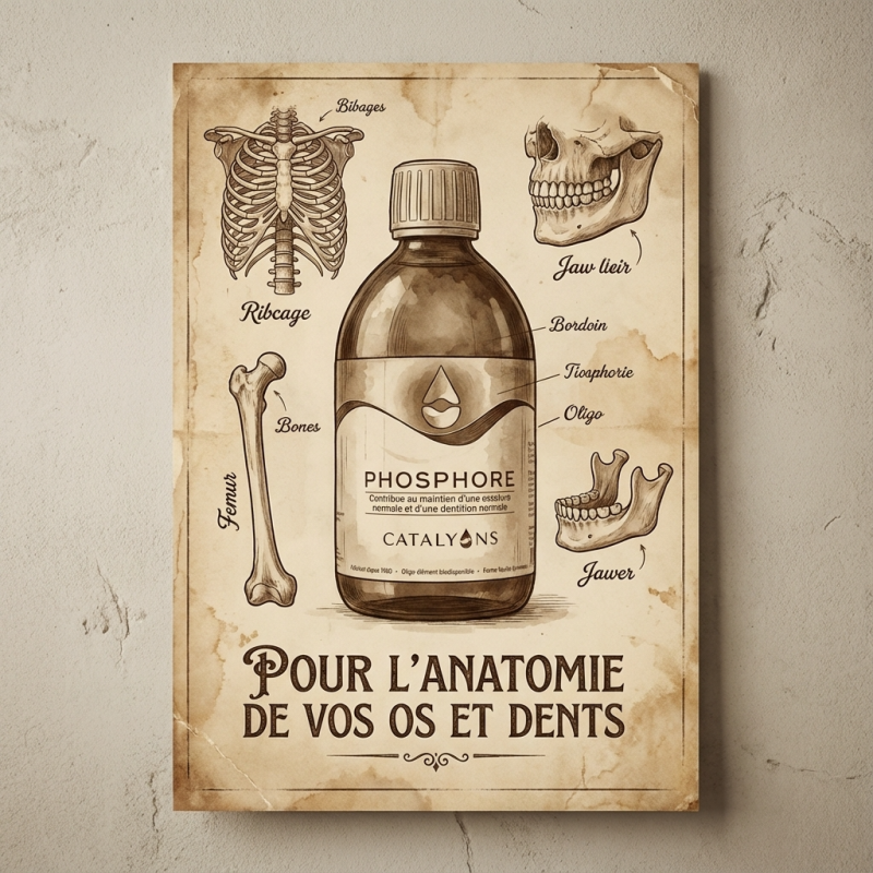 Le pilier de la structure osseuse et de l'énergie cellulaire : le PHOSPHORE des Laboratoires Catalyons (500 ml) est une solution ionisée indispensable au maintien de la solidité des os et de la santé dentaire. Deuxième minéral le plus abondant dans le corps après le calcium, il joue un rôle majeur dans la formation des tissus osseux et de l'émail des dents. Au-delà de sa fonction structurelle, le phosphore est essentiel au métabolisme énergétique, car il entre dans la composition de l'ATP, la principale source d'énergie de nos cellules. Grâce à sa forme liquide ionisée, il est directement assimilable par l'organisme, garantissant une efficacité optimale pour soutenir la vitalité et la densité minérale.