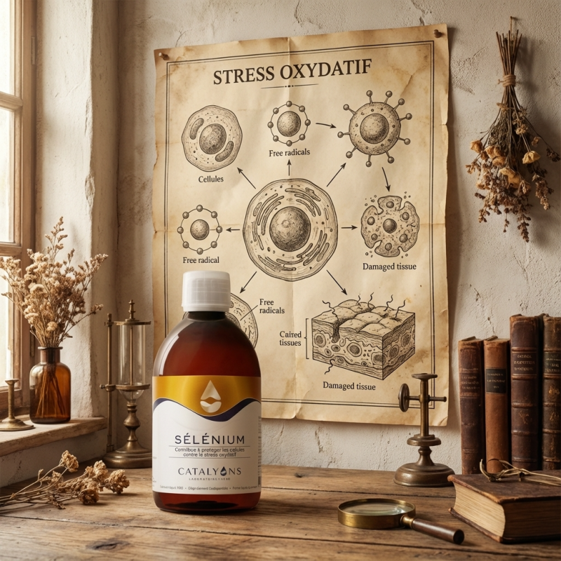 En plus de sa fonction protectrice, le Sélénium Catalyons intervient dans les processus de détoxification de l'organisme, notamment face aux métaux lourds, et soutient activement le métabolisme de la glande thyroïde.