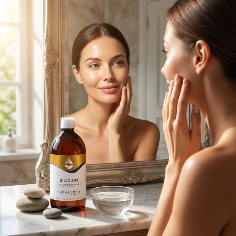 L'architecte de votre corps et de votre souplesse : le SILICIUM des Laboratoires Catalyons (500 ml) est un oligo-élément structural majeur, présenté sous une forme ionisée pour une assimilation cellulaire immédiate. Véritable ciment naturel, il intervient dans la synthèse du collagène et de l'élastine, garantissant la solidité de l'ossature et la flexibilité des articulations. Il est particulièrement recommandé pour accompagner la consolidation après un choc musculo-squelettique ou pour préserver l'élasticité des tissus (vaisseaux sanguins, peau). En agissant sur la cohésion des tissus conjonctifs, il favorise également une cicatrisation rapide et renforce la structure des cheveux dès la racine.