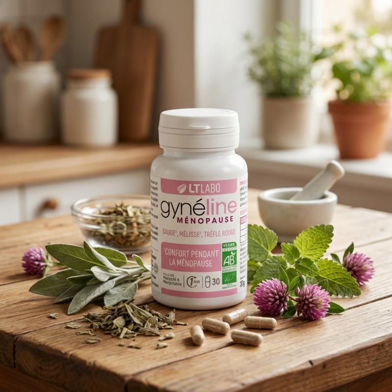 Le complément GYNELINE MÉNOPAUSE des laboratoires LT Labo offre une synergie végétale certifiée Biologique pour traverser les étapes de la ménopause sans les désagréments habituels. La Sauge officinale, pilier de cette formule, est utilisée depuis l'Antiquité pour ses vertus sur le cycle féminin ; elle aide à stabiliser le système nerveux et à limiter la transpiration excessive.