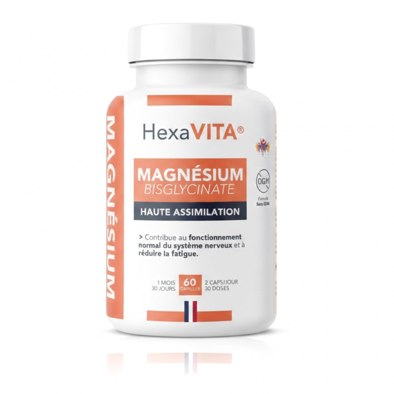 Une Forme Haute Performance : Le choix du bisglycinate, une forme où le magnésium est lié à un acide aminé (la glycine), garantit une absorption optimale par l'organisme. Cette technologie HexaVITA permet au minéral de franchir la barrière intestinale plus facilement, offrant une efficacité décuplée par rapport aux sels de magnésium standards.