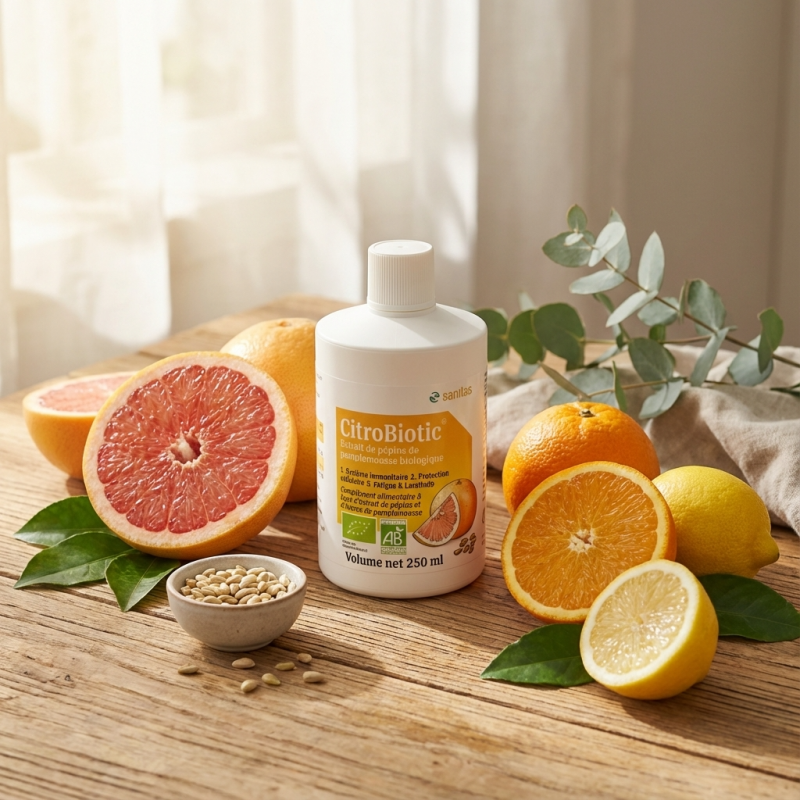 2. Respect du Microbiote : Contrairement à certaines solutions agressives, l'extrait de pépins de pamplemousse (EPP) agit de manière ciblée. Il aide à assainir le terrain sans altérer la précieuse flore intestinale, pilier de notre immunité.