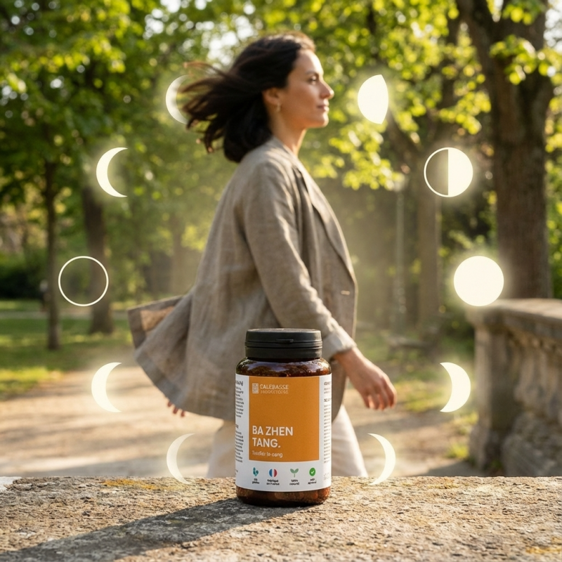• Circulation et Harmonie : Le Chuan Xiong et le Bai Shao (Pivoine) assurent une circulation fluide de l'énergie, évitant les stagnations souvent responsables de l'inconfort cyclique.