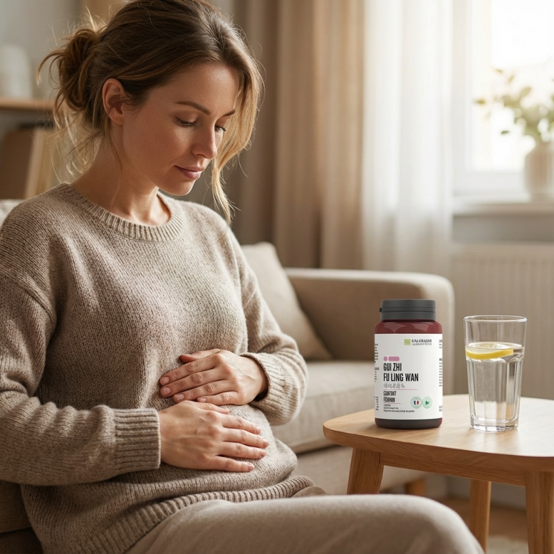 Apportez de la chaleur : En MTC, la stase de sang (amas) est souvent aggravée par le froid. Pour soutenir l'action de Gui Zhi Fu Ling Wan, appliquez régulièrement une bouillotte sur le bas-ventre le soir. Cette chaleur externe agit en synergie avec la Cannelle de la formule pour fluidifier le sang stagnant.