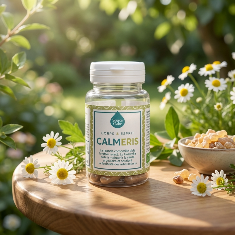 Ce complexe unique repose sur une approche holistique : apaiser le système nerveux tout en libérant les tensions physiques. Grâce à la Grande Camomille et au Safran, il favorise un retour au calme émotionnel et à la sérénité. En parallèle, l'action conjuguée du Boswellia et de la Reine des prés soutient la souplesse articulaire et musculaire. CALMERIS est l'allié précieux pour ceux qui cherchent à rompre le cycle "fatigue-tension", permettant ainsi au corps de retrouver sa légèreté et à l'esprit sa clarté.